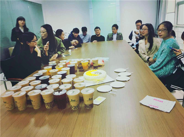 又到了一月一度的員工生日大會了,盡管天公不做美,但是依然擋不住航加和千帆小伙伴們的熱情。聽說下雨天和奶茶更配哦,貼心的人事美眉為大家準(zhǔn)備了一點點奶茶和蛋糕,看著大家挑選著自己喜歡的口味的奶茶,吃著生日壽星的蛋糕,心里是不是暖暖的呢?