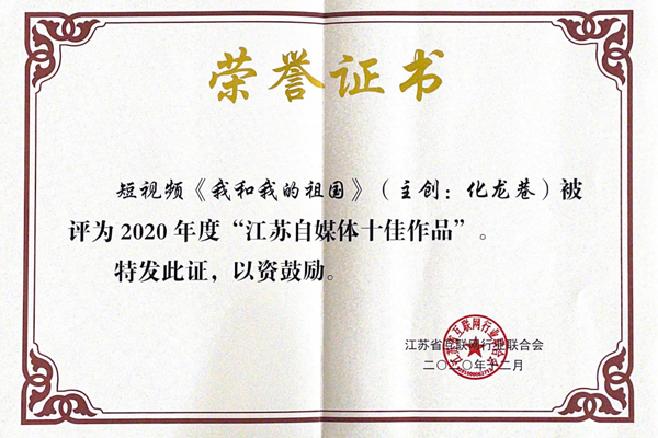 2020年12月1日,化龍網(wǎng)絡(luò)被江蘇省互聯(lián)網(wǎng)行業(yè)聯(lián)合會(huì)評(píng)為“2020年度‘江蘇自媒體十佳作品’”