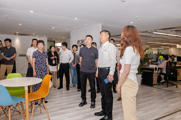 領(lǐng)導(dǎo)一行認(rèn)真聽取相關(guān)工作匯報(bào),了解企業(yè)發(fā)展現(xiàn)狀,對(duì)化龍巷黨建工作和“互聯(lián)網(wǎng)+黨建”模式表示肯定。