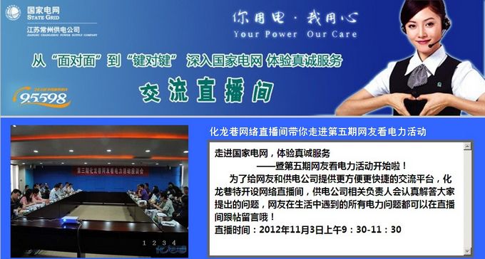 “網(wǎng)友看電力活動(dòng)”自2010年舉辦以來,深受網(wǎng)友歡迎,通過網(wǎng)友與供電公司的互動(dòng),讓網(wǎng)友深刻認(rèn)識(shí)到“安全用電、科學(xué)用電、節(jié)約用電”的重要性。2012年11月3日,走進(jìn)國家電網(wǎng),體驗(yàn)真誠服務(wù)——暨第五期網(wǎng)友看電力活動(dòng)如期展開,通過網(wǎng)絡(luò)直播間活動(dòng),將網(wǎng)友提問用圖文并茂的方式直觀展現(xiàn),供電公司會(huì)議室里,現(xiàn)場(chǎng)討論熱烈。供電公司領(lǐng)導(dǎo)及網(wǎng)友都對(duì)此次活動(dòng)表示十分滿意。