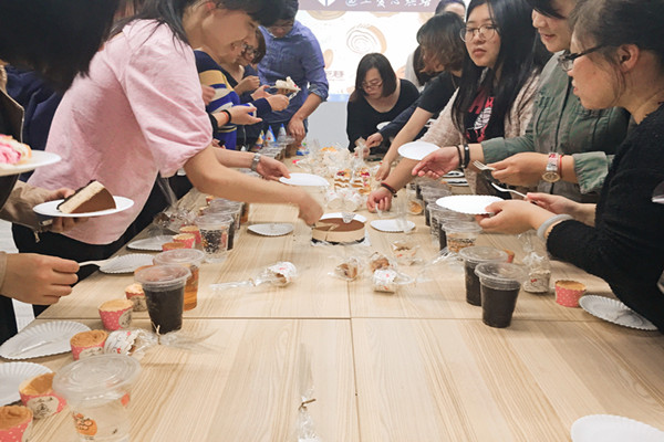 本次派對我們放棄了從外部購買活動所需的食品,改為邀請公司的小伙伴自己制作。真是不鳴則已,一鳴驚人,商貿(mào)部銷售葛欣元一氣呵成做了4個蛋糕,芒果鮮奶油、芒果裸蛋糕、榴蓮凍芝士、巧克力碎,瞬間讓公司其他小伙伴都驚呆了!蛋糕拿在手上都是沉甸甸的,實打?qū)嵉牧?,讓我不禁想,以后是不是可以找我們滴的小伙伴買生日蛋糕了呢?